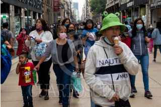 CIUDAD DE MÉXICO, 15JULIO2021.- Sin importar el día la zona centro luce abarrotada de visitantes tanto nacionales como extranjeros. Asimismo, cada vez es más constante la reducción en el uso correcto de las medidas para combatir el contagio de la Covid-19. La capital del país ha entrado oficialmente en la “Tercer Ola” de contagios, donde la población de infantes y jóvenes entre 18-39 (sector no vacunado) encabeza las listas. El día de ayer, fueron reportados 12, 116 nuevos contagios en menos de 24 horas lo que equivale a niveles iguales a la temporada invernal pasada. FOTO: GALO CAÑAS/CUARTOSCURO.COM