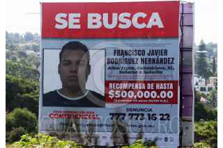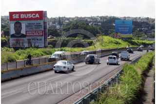 TEMIXCO, MORELOS, 16JULIO2021.- El gobierno de Cuauhtémoc Blanco Bravo anuncio que se entregara una recompensa de hasta 500,000 mil pesos a quien proporcione información que lleve a la captura de Francisco Javier Rodríguez Hernández, alias “el Frank” “Colombiano” “XL” o “Señorón”, a quien acusa de ser el principal generador de violencia en la entidad. En la imagen un espectacular donde se anuncia la recompensa instalada a la orilla de la autopista del Sol al que intentaron prenderle fuego hace un par de días. FOTO: MARGARITO PÉREZ RETANA / CUARTOSCURO.COM