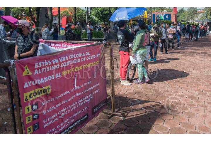 CIUDAD DE MÉXICO, 16JULIO2021.- Capitalinos asisten a realizarse la prueba PCR para la detección de covid-19 en el "macro kiosco" de atención ubicado en la explanada principal de la Alcaldía Benito Juárez. Autoridades de la capital indicaron que se mantendrá el semáforo epidemiológico amarillo debido a los recientes incrementos de hospitalizaciones y repuntes de casos activos de SARS-CoV-2 en la ciudad. FOTO: MARIO JASSO/CUARTOSCURO.COM