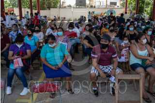 TEHUANTEPEC, OAXACA, 16JULIO2021.- Ultimo día de vacunación en Tehuantepec para personas de 30 a 39 años. La región del Istmo de Tehuantepec es la primera en el estado en la que se vacuna a las personas de 30 años y más; pese esto se registro baja afluencia. Esto se da en medio de lo que llaman "tercera ola" de contagios y fallecimientos por Covid-19 en los municipios de la región. En el Istmo de Oaxaca se aplicarán un total de 26 mil 740 dosis durante los días 14, 15 y 16 de julio. FOTO: ANDREA MURCIA /CUARTOSCURO.COM