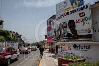 TEHUANTEPEC, OAXACA, 16JULIO2021.- Promocionales en las calles principales de Tehuantepec invitan a votar en la consulta popular para enjuiciar o no el próximo primero de agosto a exmandatarios. La propuesta fue presentada por Andrés Manuel López Obrador, presidente de México. FOTO: ANDREA MURCIA /CUARTOSCURO.COM