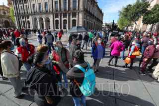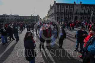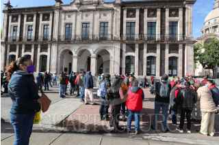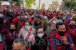 TOLUCA, ESTADO DE MÉXICO, 16JULIO2021.- Trabajadores sindicalizados del ayuntamiento de Toluca que laboran en Agua y Saneamiento, DIF municipal, servicio de limpieza, IMCUFIDET se manifestaron en palacio municipal y bloquearon las principales calles, exigiéndole al alcalde Juan Rodolfo Sánchez Gómez el pago de su quincena así como su prima vacacional, también denuncian la falta de entrega de uniformes, pago de seguro de vida, entrega de finiquitos, apoyo a la vivienda entre otros, durante las últimas semanas el retraso en pagos se ha echo más evidente. FOTO: CRISANTA ESPINOSA AGUILAR /CUARTOSCURO.COM