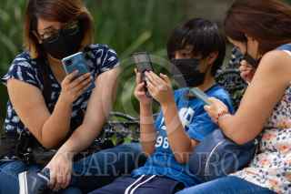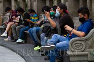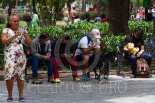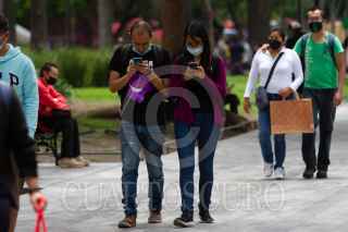 CIUDAD DE MÉXICO, 17JULIO2021.- Capitalinos se reúnen en la Alameda Central para jugar con sus amigos videojuegos móviles a través de aplicaciones. Según diversos estudios, un milenial pasa alrededor de 5 horas en el celular al día y los adultos promedio pasan alredor de tres horas. FOTO: GRACIELA LÓPEZ/CUARTOSCURO.COM
