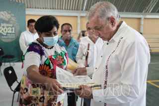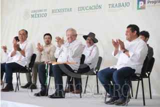 AYUTLA DE LOS LIBRES, 17JULIO2021.- Andrés Manuel López Obrador, presidente de México, presidió el evento Programas para el Bienestar en Ayutla de los Libres, Guerrero. Lo acompañaron: Ariadna Montiel Reyes, Subsecretaria de Bienestar; Pamela López Ruiz, Directora General del Programa La Escuela es Nuestra; Carlos Torres Rosas, Secretario Técnico del Gabinete de la Oficina ?de la Presidencia; Marath Bolaños López, Subsecretario de Empleo y Productividad Laboral; Héctor Antonio Astudillo Flores, Gobernador Constitucional del Estado de Guerrero; Adelfo Regino Montes, Director General del Instituto Nacional de los Pueblos Indígenas; Abraham Vázquez Piceno, Coordinador Nacional del Programa de Becas para el Bienestar Benito Juárez; Javier May Rodríguez, Secretario de Bienestar;Logino Julio Hernández Campos, Coordinador de la zona Tuun Savi del Concejo municipal comunitario de Ayutla de los Libres, Guerrero; Hugo Raúl Paulín Hernández. Subsecretario de Inclusión Productiva y Desarrollo Rural; Raymundo Nava Ventura, Coordinador de la zona Me' phaa del Concejo municipal comunitario de Ayutla de los Libres, Guerrero; Victoria Rodríguez Ceja, Subsecretaria de Egresos de la Secretaría de Hacienda y Crédito Público yPatricia Guadalupe Ramírez Bazán, Coordinadora de la zona Mestiza del Concejo municipal comunitario de Ayutla de los Libres, Guerrero. FOTO: PRESIDENTE/CUARTOSCURO.COM