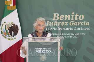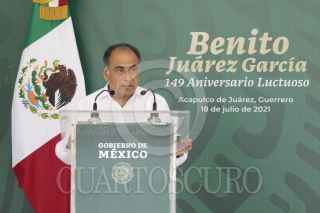 ACAPULCO, GUERRERO, 18JULIO2021.- Andrés Manuel López Obrador, presidente de México, encabezó la ceremonia por el 149 Aniversario Luctuoso de Benito Juárez García en el Monumento a Benito Juárez. El acto estuvo acompañado por: Héctor Antonio Astudillo Flores, gobernador de Guerrero; Olga Sánchez Cordero, Secretaria de Gobernación; Adelfo Regino Montes, Director General del Instituto Nacional de los Pueblos Indígenas; Adela Román Ocampo, Presidenta Municipal de Acapulco de Juárez, Guerrero y Consuelo Santiago García, Presidenta Municipal de Guelatao de Juárez, Oaxaca. FOTO: PRESIDENCIA