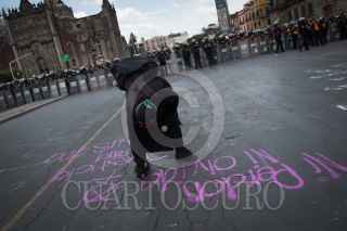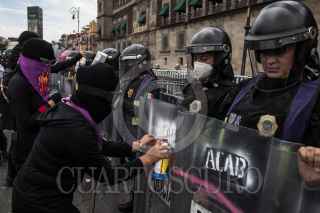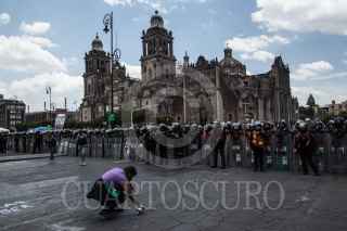 CIUDAD DE MÉXICO, 18JULIO2021.- Mujeres de distintas colectivas e integrantes del bloque negro feminista, protestaron para exigir justicia por el feminicidio de Susana una mujer asesinada suspuestamente por su marido. Policias mujeres acordonaron la marcha hasta su llegada al Zócalo donde realizaron vayas al rededor de la catedral metropolitana y Palacio Nacional con el fin de resguardar de cualquier enfrentamiento por parte de las manifestantes. Al finalizar las chicas realizaron un tendedero de escucha donde relataron sus episodios de violencia y denunciarios a sus agresores y violadores. FOTO: ANDREA MURCIA /CUARTOSCURO.COM