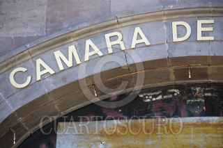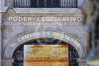 TOLUCA, ESTADO DE MÉXICO, 19JULIO2021.- Instalan sistema contra fuego en las puertas de la Cámara de Diputados del Estado de México, después de haber sido vandalizaras en varias ocasiones estas entradas, colocando rociadores en la parte alta para poder controlar el fuego. FOTO: CRISANTA ESPINOSA AGUILAR /CUARTOSCURO.COM