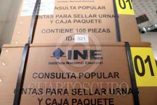 CUERNAVACA, MORELOS, 19JULIO2021.- Esta mañana llego a las bodegas de la Junta Distrital Ejecutiva 01 del Instituto Nacional Electoral la papelería que se usara en la Consulta Popular 2021. Son un millón 449,97 papeletas que serán usadas en los cinco distritos electorales del estado el próximo primero de agosto. FOTO: MARGARITO PÉREZ RETANA / CUARTOSCURO.COM
