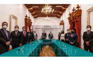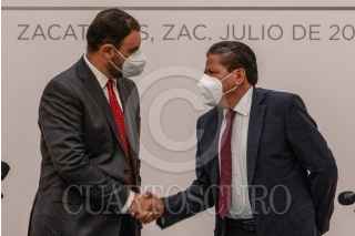 ZACATECAS, ZACATECAS 19JULIO2021 .- Alejandro Tello Cristerna, gobernador del estado y el gobernador electo David Monreal Ávila durante la Entrega-Recepción del Poder Legislativo de Zacatecas 2016-2021. FOTO: DIANA VALDEZ /CUARTOSCURO.COM