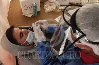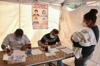 CIUDAD DE MÉXICO 20JULIO2021.- Se mantiene la alta demanda en los Macro Kioscos COVID-19 instalados en las explanadas de las alcaldías de la ciudad, en este sentido desde tempranas horas cientos de capitalinos realizan filas para esperar una ficha y así poder realizarse la prueba de detección para coronavirus. Cabe resaltar que en palabras de doctores de los kioscos, las pruebas rápidas comienzan a escasear lo que provoca molestia en las personas que acuden a los módulos. FOTO: ROGELIO MORALES /CUARTOSCURO.COM