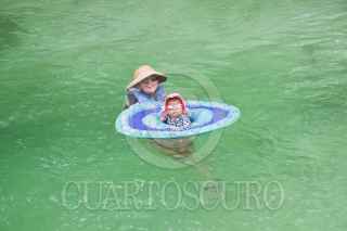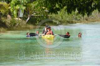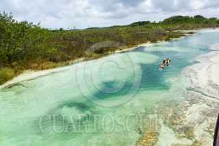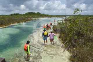 BACALAR, QUINTANA ROO, 20JULIO2021.- Los Rápidos de Bacalar son un sitio visitado comúnmente por turistas que visitan la entidad. El lugar está rodeado de enormes estromatolitos simulando un ancho camellón. El canal se puede recorrer nadando o a bordo de un kayak. FOTO: CUARTOSCURO.COM