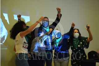 XALAPA, VERACRUZ, 20JULIO2021.- Integrantes de la colectiva Católicas por el Derecho a Decidir celebraron la despenalización del aborto en Veracruz. Veracruz ha despenalizado la interrupción legal del embarazado hasta la semana 12 de gestación y se convierte en la 4ta entidad en reconocer este derecho junto con: Ciudad de México, Oaxaca y el más reciente Hidalgo. Fueron 25 votos a favor, 13 en contra y una abstención lo que definió la modificación a la reforma del Código Penal. FOTO: YERANIA ROLÓN/CUARTOSCURO.COM