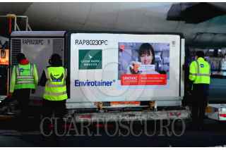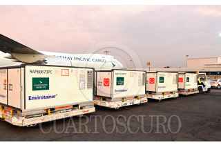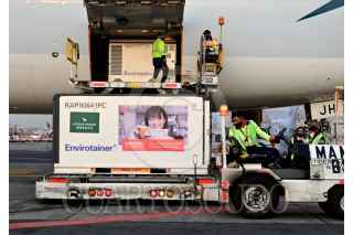 CIUDAD DE MÉXICO, 21JULIO2021.- México recibió dos millones de vacunas envasadas contra COVID-19 del laboratorio Sinovac Life Sciences Co., Ltd. El cargamento enviado desde China arribó esta madrugada a la terminal 1 del Aeropuerto Internacional de la Ciudad de México (AICM) “Benito Juárez". FOTO: CUARTOSCURO.COM