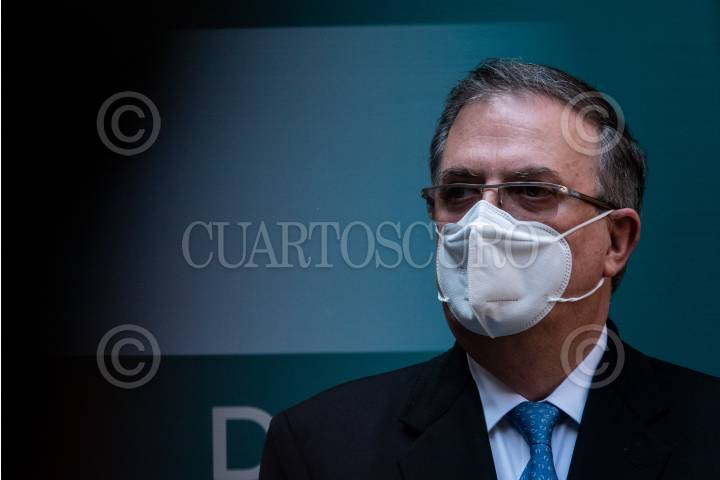 CIUDAD DE MÉXICO, 22JULIO2021.- Marcelo Ebrard Casaubón, secretario de Relaciones Exteriores; Maximiliano Reyes Zúñiga, subsecretario para América Latina y el Caribe; Julio Garro, embajador de Perú en México, así como embajadoras y embajadores de México, encabezaron la develación de la placa “Simón Bolivar ‘El Libertador’” en el patio del museo de Relaciones Exteriores con motivo del 238º aniversario de su natalicio. El canciller reconoció la labor de “El Libertador” para la construcción de y consolidación de los países de América Latina. FOTO: GALO CAÑAS/CUARTOSCURO.COM