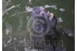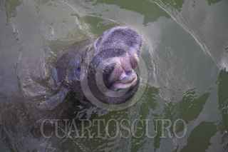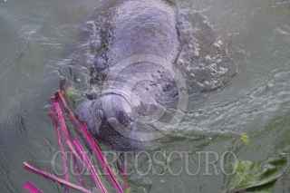 BACALAR,, QUINTANA ROO, 22JULIO2021.- “Daniel” es un manatí que se encuentra en el área natural del estado desde 2004, luego de ser rescatado en la Laguna Guerrero, Chetumal, en 2003. Desde entonces ha sido cuidado y alimentado por expertos en mamíferos marinos. Este ejemplar de manatí del Caribe mide 2.31 metros de longitud y pesa, en promedio, 210 kilogramos, un manatí adulto puede alcanzar 4 metros de longitud y 600 kilos de peso viven unos 60 años o más, se alimentan de plantas algas acuática y pasto marinos por día comen hasta 10 por ciento de su peso. En el país se estima existen unos mil manatíes y al menos en el estado de Tabasco se consideran la especie más amenazada. FOTO: ELIZABETH RUIZ/CUARTOSCURO.COM
