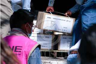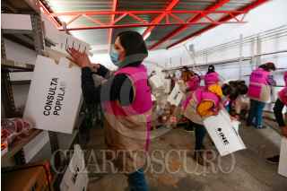 TOLUCA, ESTADO DE MÉXICO, 22JULIO2021.- Está mañana el INE inició la distribución de papeletas, documentos y demás material a las juntas distritales del Estado de México que serán utilizadas el 1 de agosto en la consulta popular. FOTO: CRISANTA ESPINOSA AGUILAR /CUARTOSCURO.COM