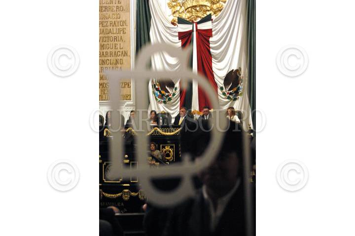 MÉXICO D.F. 17SEPTIEMBRE2006.- En la asamblea de representantes donde rindio su ultimo informe de gobierno, Virginia Jaramillo, muestra una pancarta donde estaba escrito "panista mentirosos y corruptos". FOTO: GUILLERMO PEREA/ CUARTOSCURO.COM