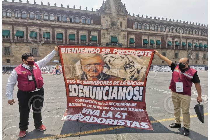 CIUDAD DE MÉXICO, 22JULIO2021.- Servidores de la Nación de la Secretaría de Bienestar se manifestaron afuera de Palacio Nacional para denunciar que fueron despedidos de manera injustificada a por parte de sus directores, exigieron al Presidente de México intervenga en sus casos. FOTO: MOISÉS PABLO/CUARTOSCURO.COM