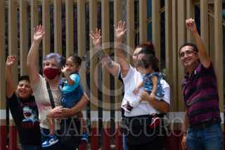 CIUDAD DE MÉXICO, 23JULIO2021.- Una familia acudió a visitar a una niña internada en el Hospital Infantil de México "Federico Gómez". Desde la calle los familiares la saludaron y la niña acompañada de un enfermero les respondió los saludos desde el hospital. FOTO: GRACIELA LÓPEZ/CUARTOSCURO.COM