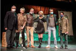 CIUDAD DE MÉXICO 24JULIO2021.- César Bono, regreso a los escenarios con el monólogo "Defendiendo al Cavernícola", esto a poco más de tres años del accidente cardiovascular que sufrió el actor. Bono tuvo como invitados de honor a la productora Susana Moscatel y al conductor Ponchó Vera, en el inicio de la nueva temporada del monólogo, así mismo se entregó un reconocimiento a Cesar Bono por sus más de 3 mil 400 representaciones. FOTO: ROGELIO MORALES /CUARTOSCURO.COM