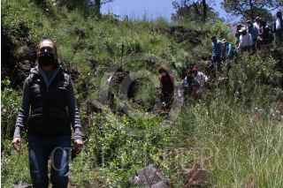 CIUDAD DE MÉXICO 24JULIO2021.- Claudia Sheinbaum, jefa de gobierno y Patricia Aceves, alcaldesa de Tlalpan, realizaron un recorrido por el paraje la Cima en San Miguel Topilejo en la que también participaron núcleos agrarios de la zona. Durante el recorrido se mostraron los trabajos de conservación de los bosques y resaltaron la importación de dicho lugar para la parte urbanizada de la cuidad. FOTO: ROGELIO MORALES /CUARTOSCURO.COM