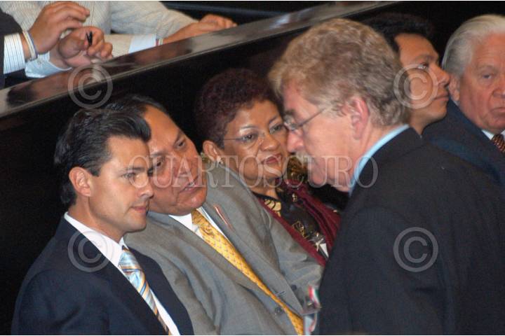 MÉXICO D.F. 17SEPTIEMBRE2006.- Marcelo Ebrad acompañado de Matí Batres presidente del PRD Carlos Navarrete cordinador de los Senadores del PRD y Jesús González Garza, cordinador de diputados del mismo partido, durante el ultimo informe de gobierno de Alejandro Encinas, en la asamblea de representantes. FOTO: GUILLERMO PEREA/CUARTOSCURO.COM