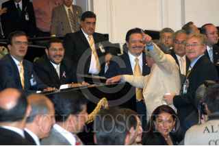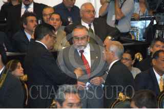 MÉXICO D.F. 17SEPTIEMBRE2006.- Marcelo Ebrad acompañado de Matí Batres presidente del PRD Carlos Navarrete cordinador de los Senadores del PRD y Jesús González Garza, cordinador de diputados del mismo partido, durante el ultimo informe de gobierno de Alejandro Encinas, en la asamblea de representantes. FOTO: GUILLERMO PEREA/CUARTOSCURO.COM
