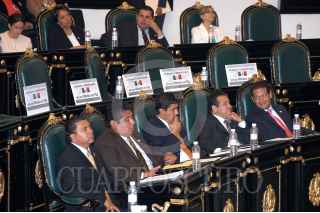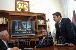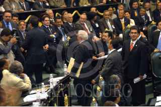 MÉXICO D.F. 17SEPTIEMBRE2006.- Los panistas Miguel Hernández, Carlos Gelista y Jorge Triana, se retiraron de la sala de sesiones de la asamblea de representantes al momento de que el jefe de gonierno comenzo a rendir su ultimo informe de gobierno. FOTO: GUILLERMO PEREA/CUARTOSCURO.COM