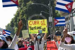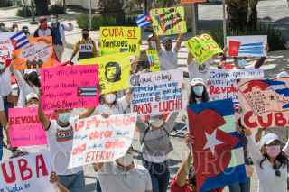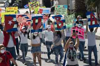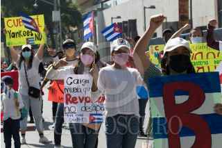 CIUDAD DE MÉXICO, 25JULIO2021.- Cubanos radicados en en México y simpatizantes del régimen de aquel país marcharon del Hemiciclo a Juárez rumbo a la Embajada de Estados Unidos, para conmemorar el 68 Aniversario al Cuartel Moncada, que dio inicio a la Revolución Cubana. FOTO: MOISÉS PABLO/CUARTOSCURO.COM
