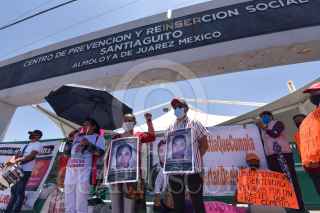 ALMOLOYA DE JUÁREZ, ESTADO DE MÉXICO, 25JULIO2021.- Integrantes de Haz Valer Mi Libertad y del Centro de Derechos Humanos Zeferino Ladrillero realizaron una asamblea regional en la entrada principal del Centro de Prevención y Reinserción Social de Santiaguito en Almoloya de Juárez, en donde exigieron Amnistía para sus familiares presos en los diversos penales del Estado de México, dieron un recorrido alrededor del penal para que sus presos superan que estaban ahí. FOTO: CRISANTA ESPINOSA AGUILAR /CUARTOSCURO.COM
