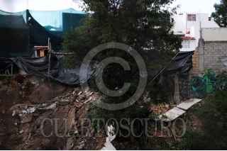 CIUDAD DE MÉXICO, 25JULIO2021.- Desde semanas anteriores un deslave se presentó a un costado de la construcción de unas viviendas en la colonia Corpus Christi, en la Alcaldía Álvaro Obregón, lo que provocó la caída de una barda y la preocupación de los habitantes que tienen sus hogares a pocos metros de la obra negra, la cual se encuentra detenida a causa del deslave y lo sensible que se encuentra el terreno por las constantes lluvias de estas semanas. FOTO: DANIEL AUGUSTO /CUARTOSCURO.COM