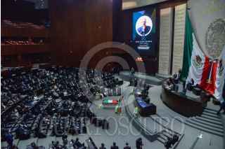 CIUDAD DE MÉXICO, 27JULIO2021.- Sesión solemne de la Cámara de Diputados en homenaje de cuerpo presente a René Juárez Cisneros, ex gobernador de Guerrero y coordinador de la bancada del PRI, quien falleció a los 65 años por complicaciones de covid-19. FOTO: MARIO JASSO/CUARTOSCURO.COM