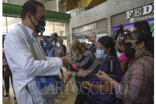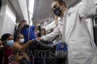 MONTERREY, NUEVO LEÓN, 27JULIO2021.- Ante el incremento de casos por Covid-19 en el estado, Secretaría de Salud de Nuevo León acudió al metro de Monterrey para hacer concientización del uso de cubrebocas en el transporte público, encabezado por el titular Manuel De la O Cavazos. FOTO: GABRIELA PÉREZ MONTIEL / CUARTOSCURO.COM