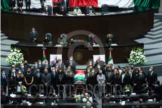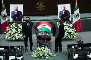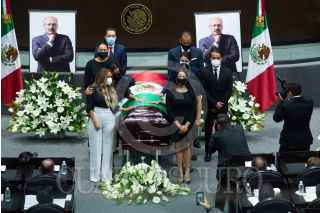 CIUDAD DE MÉXICO, 27JULIO2021.- Sesión solemne de la Cámara de Diputados en homenaje de cuerpo presente a René Juárez Cisneros, ex gobernador de Guerrero y coordinador de la bancada del PRI, quien falleció a los 65 años por complicaciones de covid-19. FOTO: MARIO JASSO/CUARTOSCURO.COM