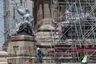 CIUDAD DE MÉXICO, 27JULIO2021.- Continúan los trabajos de remozamiento de la columna del Ángel de la Independencia. FOTO: MOISÉS PABLO/CUARTOSCURO.COM