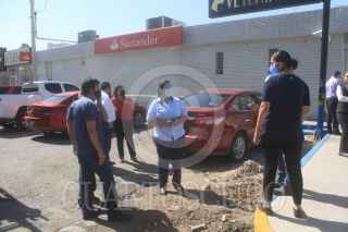 CIUDAD JUÁREZ, CHIHUAHUA, 27JULIO2021.- Varios plafones cayeron de una sucursal de un banco dejando como resultados varios empleados golpeados. El hecho ocurrió en la sucursal ubicada en avenida De La Raza y Adolfo López Mateos. Según se informó, en el lugar varios empleados resultaron lesionados, por lo cual llegó una ambulancia de la Cruz Roja para atender a los trabajadores. De igual manera arribaron elementos de Seguridad Pública para resguardar la zona así como el Director de Protección Civil, Efrén Matamoros para inspeccionar las instalaciones del inmueble y evitar que más personas se pusieran en riesgo ante este hecho. FOTO: NACHO RUÍZ/CUARTOSCURO.COM