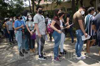 CIUDAD DE MÉXICO. 27JULIO2021.- Miles de jovenes de 30 a 39 años realizaron filas para aplicarse la primera dosis de la vacuna anti Covid 19 en el Centro Médico Nacional Siglo XXI. FOTO: VICTORIA VALTIERRA/CUARTOSCURO.COM