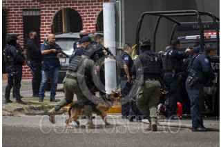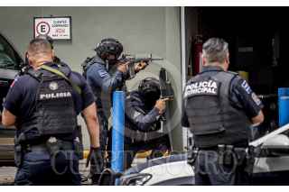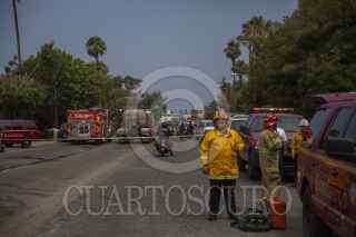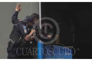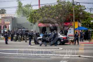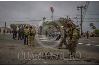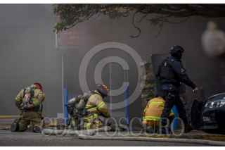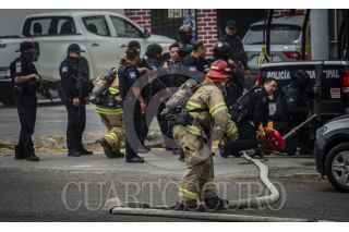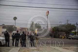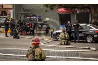 TIJUANA, BAJA CALIFORNIA,27JULIO2021.- Fuerte movilización policiaca se registró en Tijuana después que un hombre incendió un establecimiento de la tienda Oxxo. Elementos del cuerpo de bomberos acudieron al lugar para sofocar el llamas, mientras que agentes de distintas corporaciones intentaban detener al presunto culpable que se perpetró en el interior de la tienda de autoservicio, misma que se ubica en la avenida Pedregal, del fraccionamiento Playas de Tijuana. Tras varios minutos de dialogo con un grupo especial de la Policía Municipal, el hombre se entregó y posteriormente fue detenido. FOTO: OMAR MARTÍNEZ /CUARTOSCURO.COM