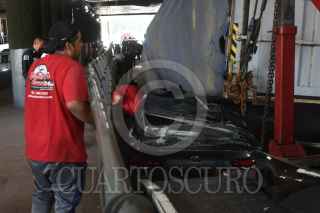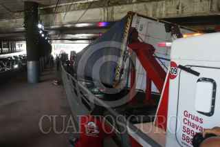 NAUCALPAN, ESTADO DE MÉXICO, 27JULIO2021.- La conductora de un automóvil salvó la vida luego de que la caja de un tráiler cayera sobre su auto en el bajopuente de Circuito del Parque y Periférico, en la colonia Ciudad Satélite. FOTO: CRISTIAN HERNÁNDEZ/CUARTOSCURO.COM