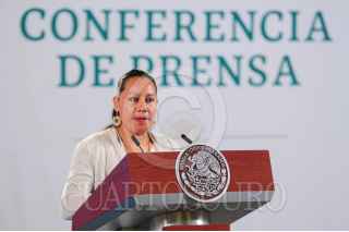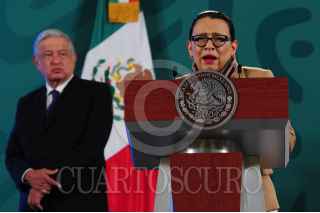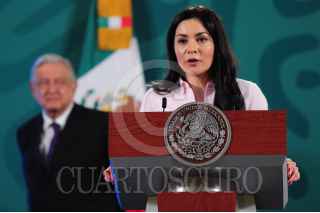 CIUDAD DE MÉXICO, 28JULIO2021.- Andrés Manuel López Obrador, presidente de México, encabezó la conferencia mañanera de este miércoles y donde estuvo acompañado por Rosa Icela Rodríguez, titular de la Secretaría de Seguridad y Protección Ciudadana, María Luisa Albores, secretaria de Medio Ambiente y por Elizabeth Vilchis, encargada de la sección, Quién es Quién en las Mentiras. Durante la conferencia se llevó a cabo el derecho de réplica del periodista Julio Hernández "Astillero". FOTO: DANIEL AUGUSTO /CUARTOSCURO.COM