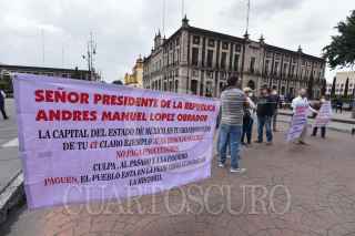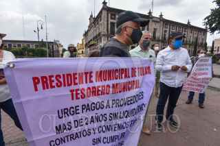 TOLUCA, ESTADO DE MÉXICO, 28JULIO2021.- Proveedores del ayuntamiento de Toluca bloquearon la avenida Independencia exigiendo a la administración de Juan Rodolfo Sánchez Gómez pagar las deudas que tiene con ellos, quien ha culpado a las administraciones pasadas de heredar deudas, es la segunda ocasión que se manifiestan exigiendo se cumplan los compromisos atraídos por la administración. FOTO: CRISANTA ESPINOSA AGUILAR /CUARTOSCURO.COM