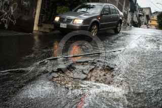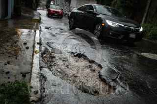 CIUDAD DE MÉXICO 28JULIO2021.- Debido a las intensas lluvias presentadas en la capital, el asfalto de calles y avenidas ha resultado dañado con baches lo que ocasiona dificultades y riesgo para automovilistas que transitan por la alcaldía Magdalena Contreras. FOTO: ROGELIO MORALES /CUARTOSCURO.COM