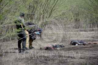 CULIACÁN, SINALOA, 29JULIO2021.-El grupo de búsqueda de personas desaparecidas, Sabuesos Guerreras, localizó los cuerpos de dos personas que fueron ejecutadas a balazos en un paraje cercano a la barda del complejo La Primavera, al sur de la ciudad. Las víctimas son dos personas del sexo masculino, de entre 25 y 35 años, complexión regular y estatura mediana. Una de las víctimas vestía short y playera deportiva de color negro; y la segunda pantalón de mezclilla negro, playera roja y tenis de color negro. Peritos localizaron tres casquillos percutidos por arma corta junto a los cuerpos. Calcularon que las víctimas tenían de 10 a 15 días de haber sido asesinados a balazos. Fotos: JUAN CARLOS CRUZ/CUARTOSCURO