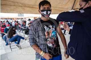 FRESNILLO, ZACATECAS, 29JULIO2021.- En la comunidad de Plateros, fue una de las sedes en el cual dio inicio la etapa de de vacunación contra el covid-19 para jóvenes de 18 a 29 años en el municipio. En días pasados Gobierno del Estado ofreció la expedición gratuita de licencias de conducir para las personas que estas edades se encuentren vacunadas. A la fecha, 317 mil zacatecanos cuentan con esquema completo de vacunación y 319 mil mas cuentan con la primera dosis. FOTO: ADOLFO VLADIMIR /CUARTOSCURO.COM