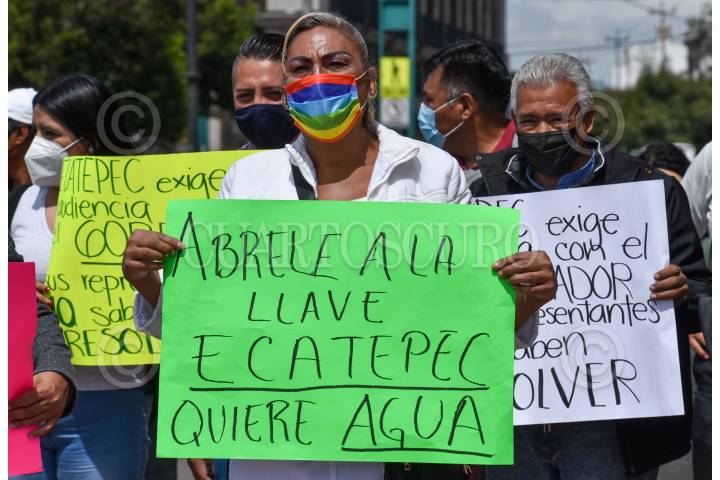 TOLUCA, ESTADO DE MÉXICO, 30JULIO2021.- Fernando Vilchis, presidente municipal de Ecatepec se manifestó en la Plaza de los Mártires ante el desabasto de agua que sufre su municipio en los últimos 14 meses, entregó una petición en Palacio de Gobierno para que el gobernador mexiquense intervenga en la regularización del suministro de agua, así como se atiendan temas como seguridad e infraestructura; por algunos minutos bloquearon los habitantes que acompañaron al edil la avenida Lerdo de Tejada. FOTO: CRISANTA ESPINOSA AGUILAR /CUARTOSCURO.COM