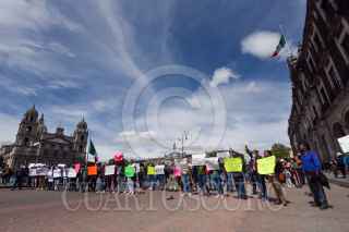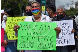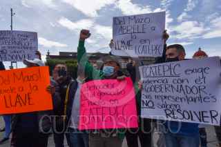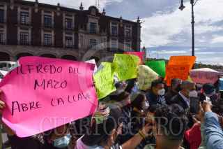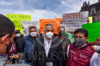 TOLUCA, ESTADO DE MÉXICO, 30JULIO2021.- Fernando Vilchis, presidente municipal de Ecatepec se manifestó en la Plaza de los Mártires ante el desabasto de agua que sufre su municipio en los últimos 14 meses, entregó una petición en Palacio de Gobierno para que el gobernador mexiquense intervenga en la regularización del suministro de agua, así como se atiendan temas como seguridad e infraestructura; por algunos minutos bloquearon los habitantes que acompañaron al edil la avenida Lerdo de Tejada. FOTO: CRISANTA ESPINOSA AGUILAR /CUARTOSCURO.COM