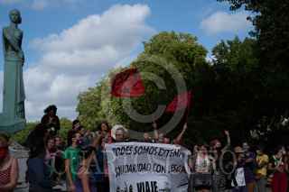 NANTES, FRANCIA, 30JULIO2021.- Colectivos y organizaciones europeas realizaron una manifestación afuera de una de las representaciones del estado francés para exigir el paso libre a la delegación aérea zapatista que intenta desde hace varias semanas conseguir un pasaporte para poder entraral continente europeo y continuar con la Gira por la Vida donde se esperaescuchar y compartir las diferentes luchas que existen contra los megaproyectosy violaciones a los derechos humanos. FOTO: ISABEL MATEOS /CUARTOSCURO.COM