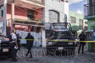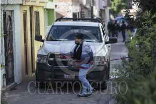 ZACATECAS, ZACATECAS, 30JULIO2021 .- Dos jóvenes fueron baleados al interior de un domicilio en la calle Barreteros de la colonia Tres Cruces de la capital zacatecana. Uno de los jóvenes falleció en el lugar y el otro fue trasladado a un hospital en estado grave. Policía de investigación y peritos de la Fiscalía acordonaron el lugar de los hechos y realizan las primeras investigaciones. FOTO: ADOLFO VLADIMIR /CUARTOSCURO.COM