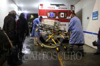 CIUDAD DE MÉXICO 30JULIO2021.- Debido a las fuertes lluvias familiares de personas con pacientes internados por coronavirus, se aglomeran en la entrada del área de urgencias del Hospital de los Venados, esto sin importar la llegada de más pacientes confirmados por COVID-19. FOTO: ROGELIO MORALES /CUARTOSCURO.COM