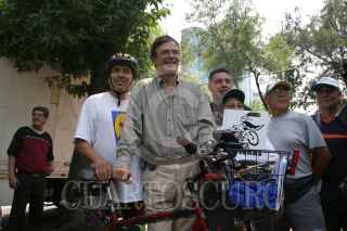 MEXICO, D.F. 24SEPTIEMBRE2006.- Fadlala Akabani Hneide, Delegado de la Benito Juárez y Marcelo Ebrard, jefe de gobierno se saludan durante el foro Un día sin auto, que se llevó a cabo en el paque hundido. FOTO: NELLY SALAS/CUARTOSCURO.COM